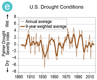 Concerning the drought “fact check”, the overall US drought index may show no discernible trend (as the report graphic before the quote you mentioned shows) but that masks what is happening at the regional level, which is gone into in detail in the report. So the first thing you picked on was just repeating what the report actually did say but ignored the rest of what was written about drought.