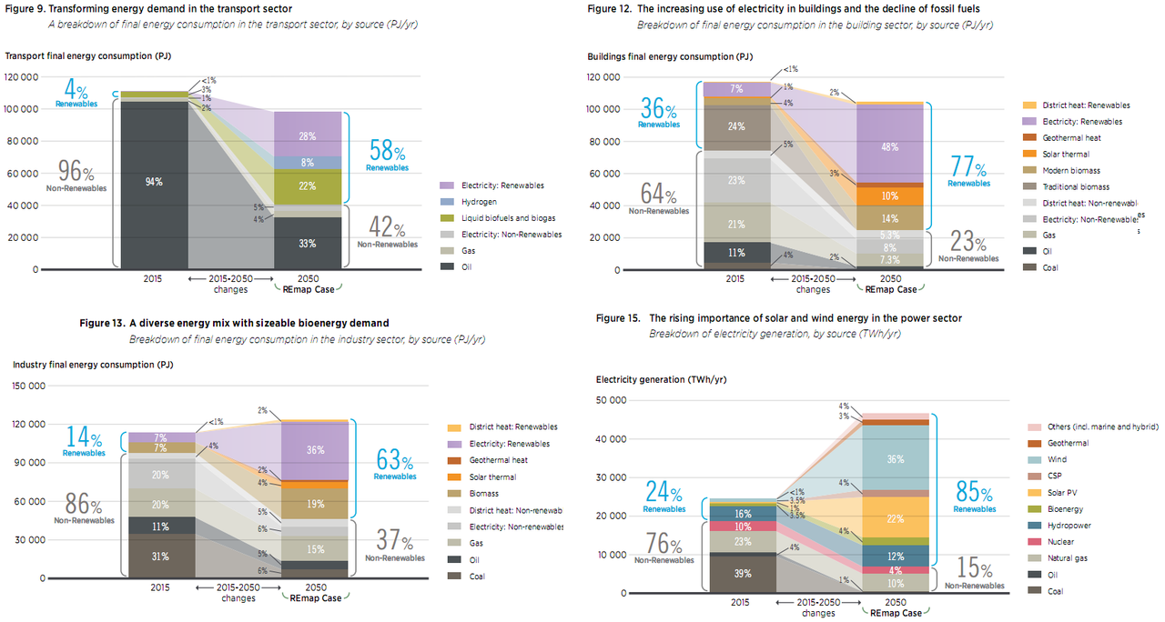 It would be interesting to compare it with the recent IEA World Energy Outlook with a 2040 horizon, which seems to be much more conservative. According to the following link: “None of the scenarios in the latest International Energy Agency World Energy Outlook show renewables growing fast enough to meet global climate goals.” This conclusion, representing some international political feeling, may justify this Irena pressure…