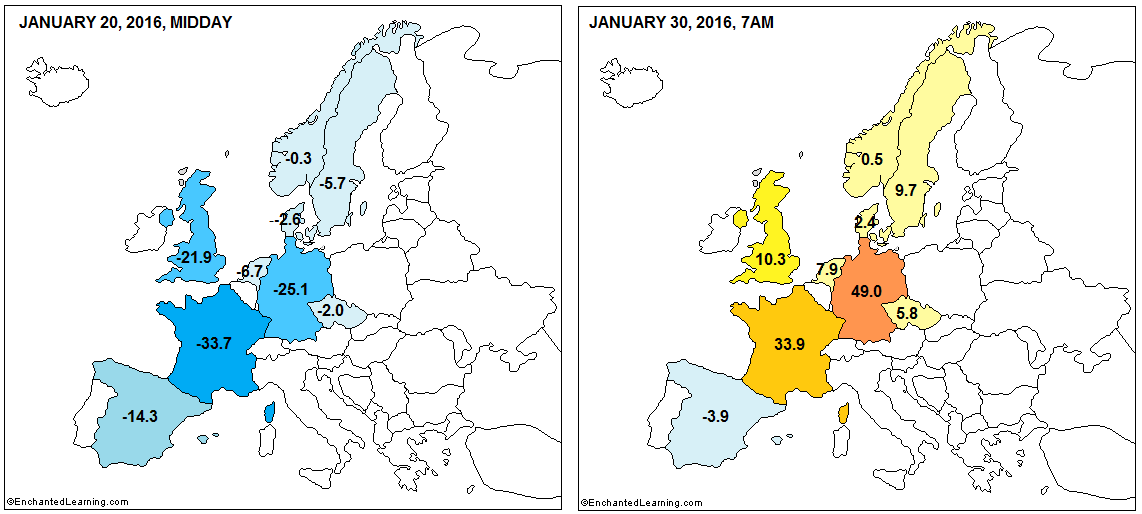 Figure 7: Country deficits and surpluses during January 20, 2016 deficit period and January 30, 2016 surplus period, gigawatts